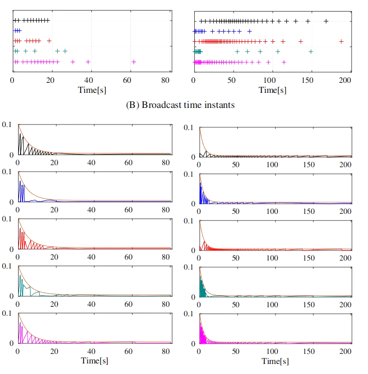 2. 事件触发通信:适配水下窄带宽的低能耗协同机制 针对水下声学通信的带宽窄、能耗高问题,事件触发通信机制替代了传统的周期性通信模式,其核心逻辑是“按需通信”——仅当预设的“事件触发条件”满足时,AUV才将自身的状态信息(位置、姿态、航速)发送给相邻AUV,否则保持静默状态。