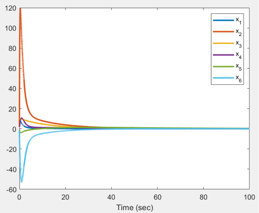 这是系统 6 个状态变量的时间响应曲线,6个状态变量同步收敛,证明 ADP 可处理强耦合非线性系统(如发动机的多参数交互),通过数据驱动学习实现多变量最优控制。