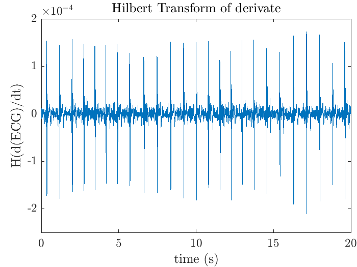 希尔伯特变换的核心作用是对信号进行相位偏移处理,生成解析信号,进而提取信号的瞬时振幅、瞬时频率等关键特征,这一特性使其非常适合ECG信号中R峰的检测——R峰作为QRS波群的峰值,具有瞬时振幅突变的特征,可通过希尔伯特变换精准定位。