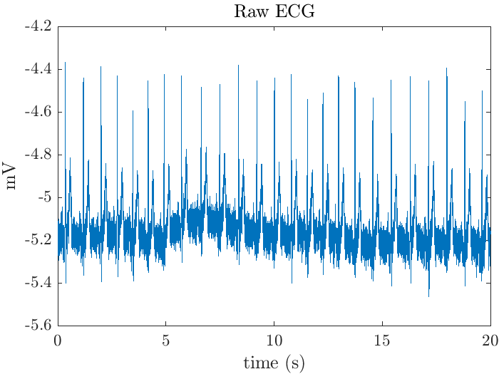 心电图(ECG)作为反映心脏电活动的重要生理信号,是诊断心律失常、心肌缺血等心血管疾病的关键依据,同时也广泛应用于健康监测、运动生理学等领域。然而,ECG信号在采集过程中极易受到干扰,导致原始信号夹杂大量噪声——常见的干扰包括工频干扰(50Hz/60Hz)、肌电干扰(人体肌肉收缩产生的高频信号)、基线漂移(呼吸、体位变化导致的低频漂移)以及电极接触噪声等。这些噪声会掩盖ECG信号的关键特征(如P波、QRS波群、T波),尤其是核心的R峰(QRS波群的峰值),直接影响心率计算与疾病诊断的准确性。