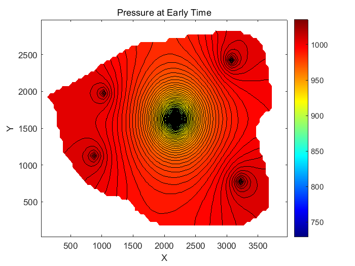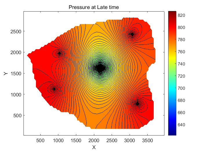 油藏数值模拟是油气田开发设计与动态管理的核心技术,通过建立数学模型刻画油藏内流体流动规律、参数时空演化特性,为开发方案优化、产量预测、剩余油分布评估提供科学依据。二维油藏模拟作为基础且实用的模拟形式,能够有效反映油藏平面上的参数分布与动态变化过程。相较于显式模拟,隐式模拟在处理高粘度流体、复杂边界条件及长期动态演化问题时具有更高的稳定性和计算效率,尤其适用于需精准捕捉渗透率与压力随时间动态变化的油井开发场景。
