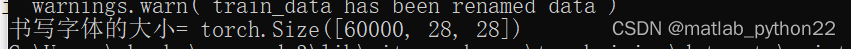 可以看出来 数学字体原始有60000个样本,每一个样本的大小是28*28的大小,通道为1,不是三通道的数值