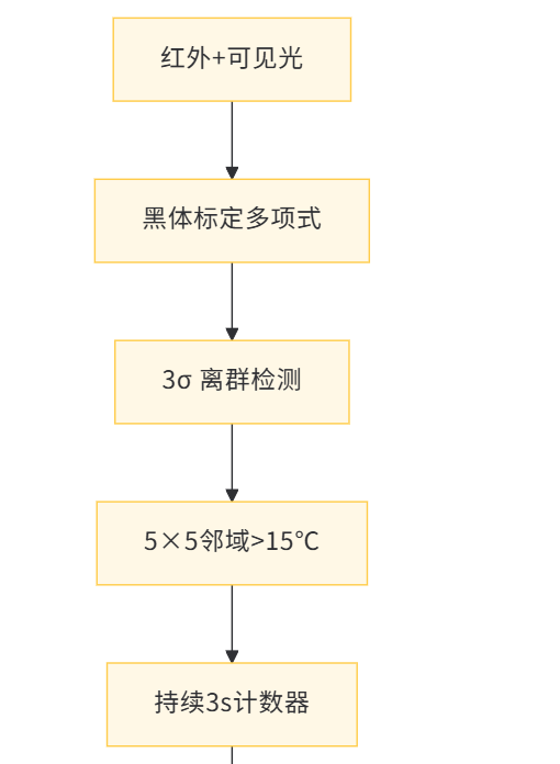 阈值判定:面积占比 > 0.1 % 且置信度 > 0.4 触发告警