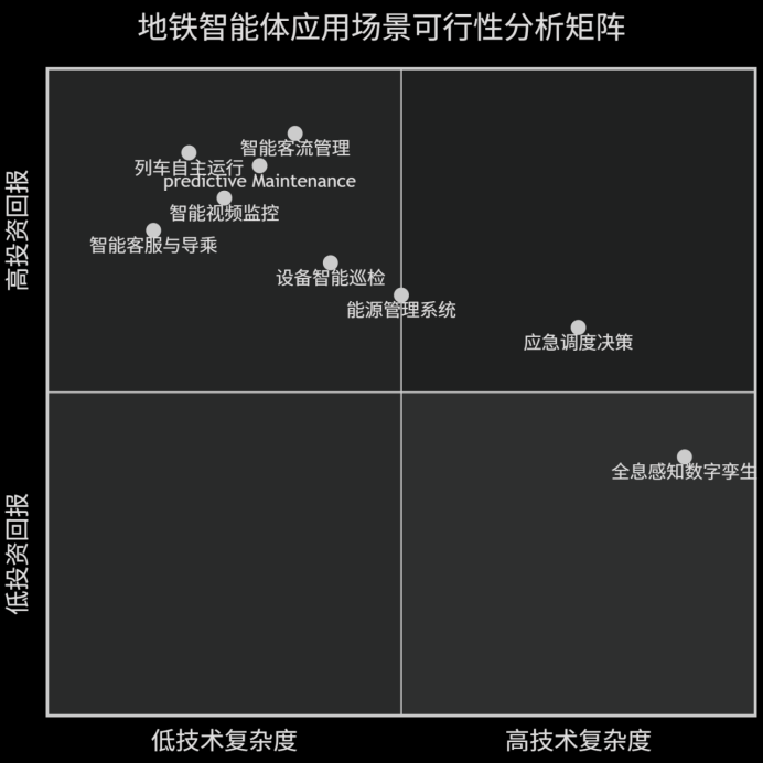 于当前的技术成熟度、成本效益和安全性要求,认为智能体(AI Agent)在地铁以下场景的落地可行性最高,可以分为近期可实现、中期可探索和远期愿景三个层面。