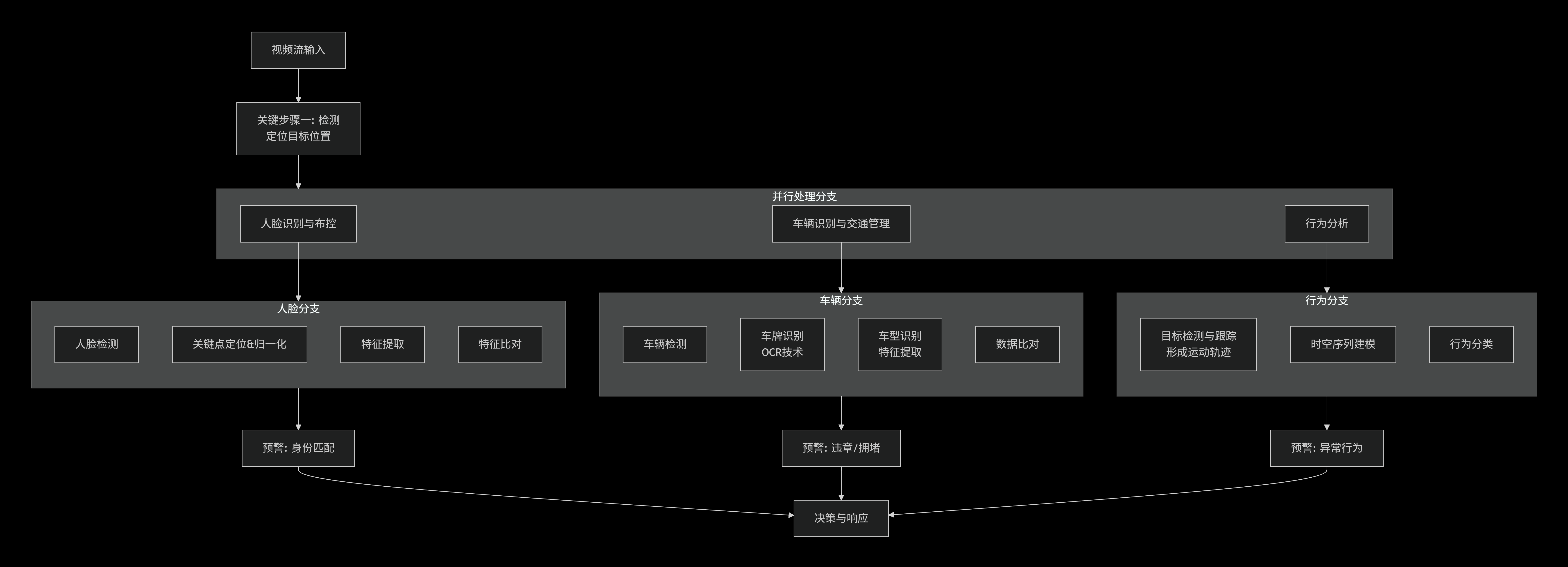 | 行为分析 | What are you doing? (时序动作) | 目标跟踪、姿态估计、时序建模(LSTM/3D CNN) | 环境复杂、行为定义模糊、误报率高 |