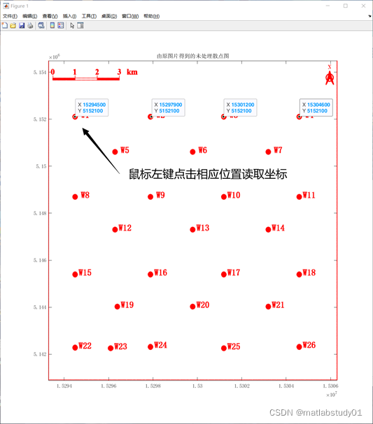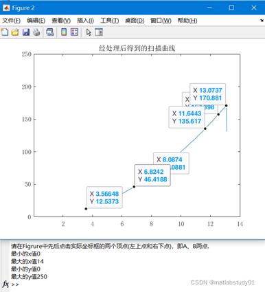 接下来可能需要等待一会儿,当图像窗口“Figure1”中的图像变为红色(图2.5)表示代码运行完成。可用鼠标左键点击相应点的位置读取坐标。