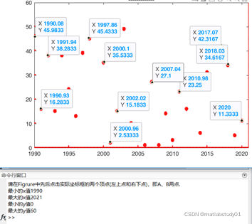 关于散点图坐标拾取操作,与地图坐标提取类似,流程相同不再赘述。以图1为例,坐标提取结果如图2.8所示。