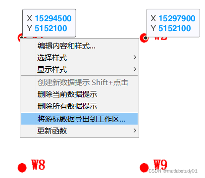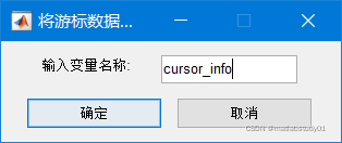 在选取的点处单击鼠标右键,选择“将游标数据导入工作区”,接下来会弹出“输入变量名称”窗口,可以修改存储数据的名称,也可以直接左键单击确定使用默认名称“cursor_info”(图2.6)。