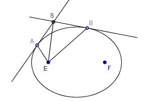 如图,椭圆上A、B两点处的切线相交于S,E是椭圆的一个焦点。求证,线段ES平分∠AEB。
