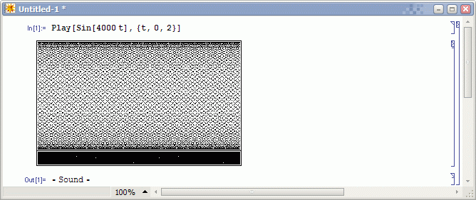 声音的实质是波函数。定义一个波函数和定义域的范围,Mathematica可以播放出它表示的声音。试在Mathematica中运行这条语句:Play[Sin[4000 t], {t, 0, 2}]