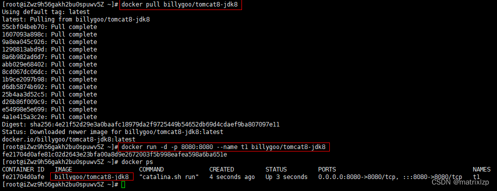 docker run -d -p 8080:8080 --name t1 billygoo/tomcat8-jdk8