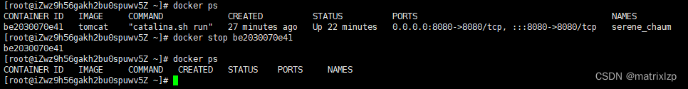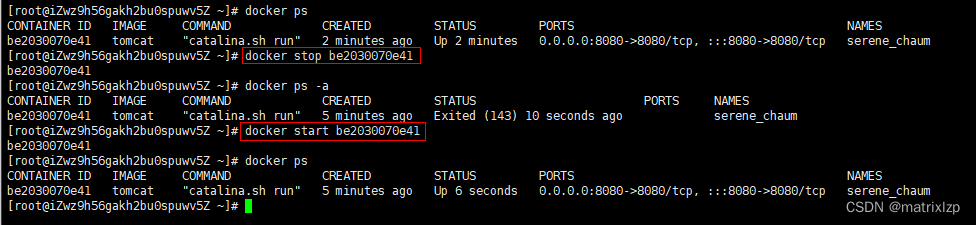 所以这里,我们先把容器停掉,然后再重新启动它。