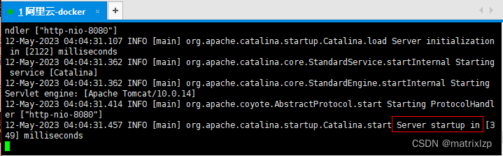 看到我们的 tomcat 正常启动了,而且 宿主机的 8080 端口 映射到 容器的 8080 端口。