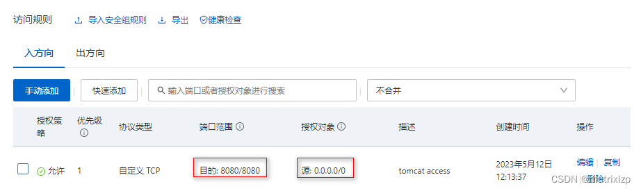 因为我的 docker 服务是安装在阿里云ECS服务器上的,所以需要在安全组开放一下 8080 端口。