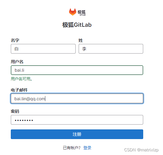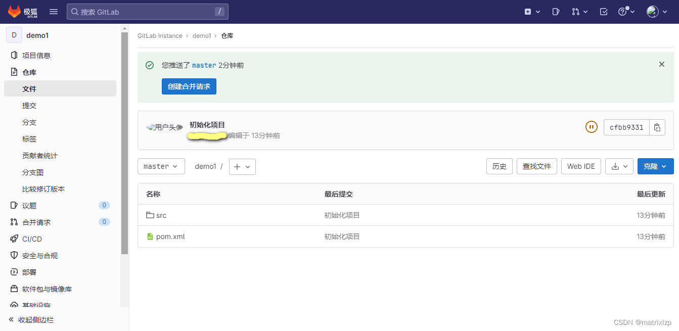 (7)在 gitlab 上能看到我们提交上来的 master 分支