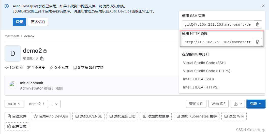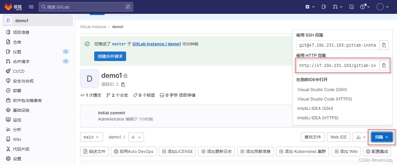 URL http://47.106.231.103/gitlab-instance-48139629/demo1.git