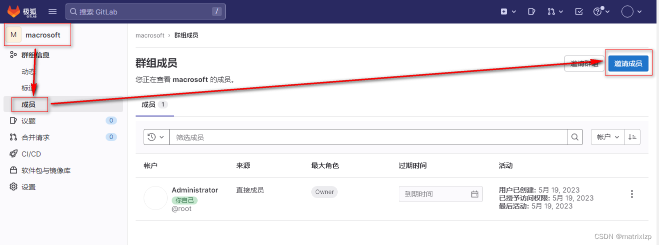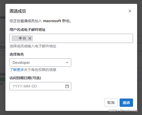 在我们 macrosoft 群组下,邀请新注册的成员-->李白