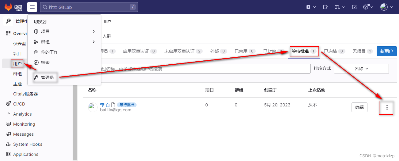 登录管理员账户,在管理中心->用户->等待审批列表中就会有刚注册的新用户。
