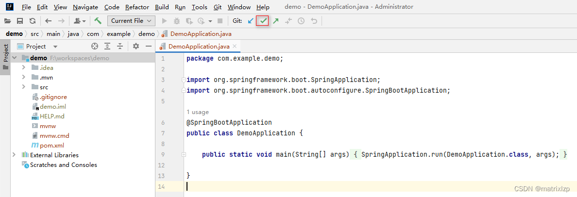 填写一下 Commit Message,选择一下项目要提交的文件,然后点击 Commit