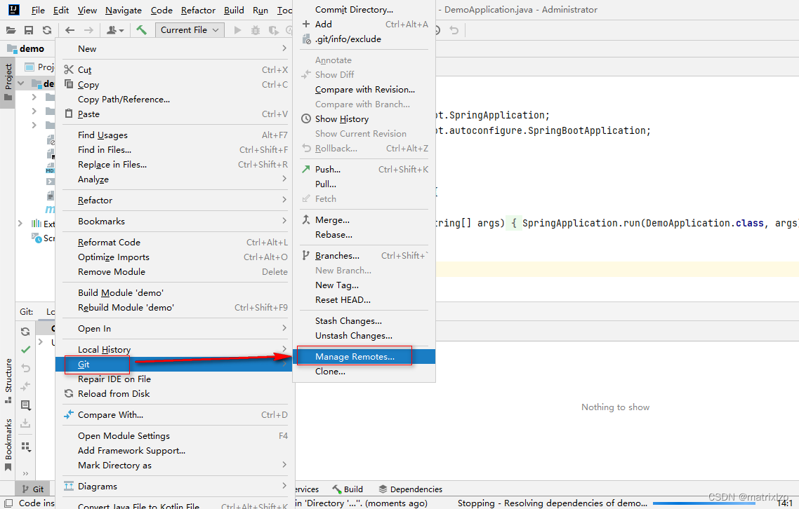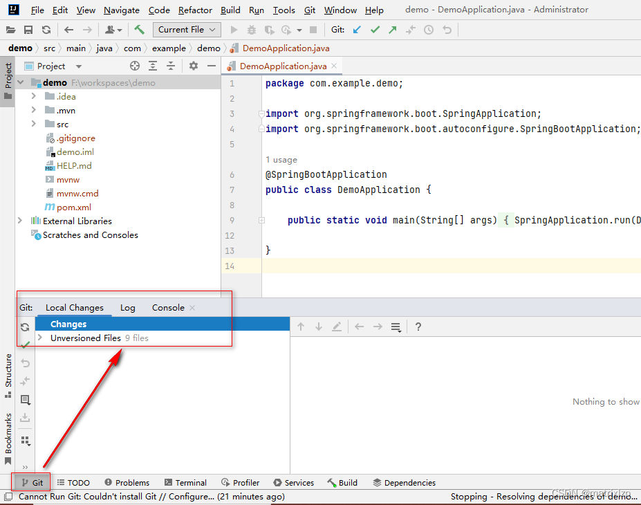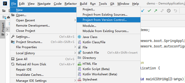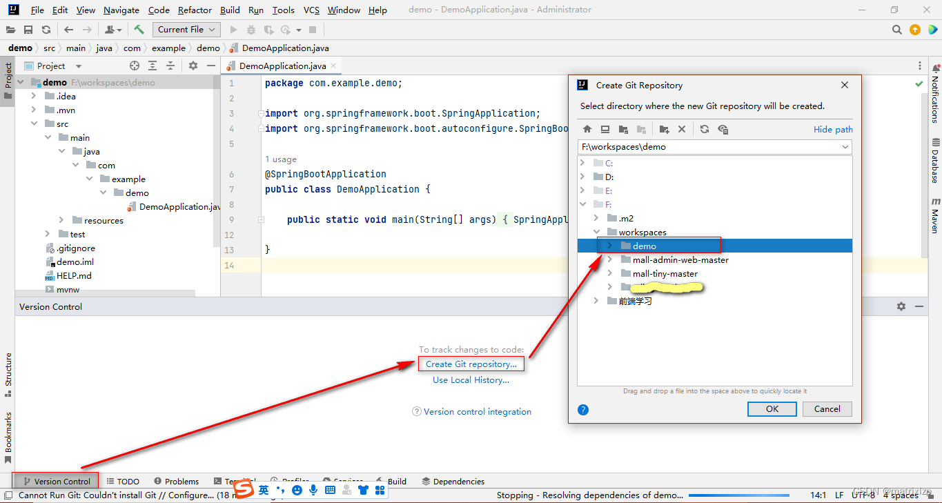 Version Control-->Create Git repository 选择当前项目,意思是把当前项目作为Git 仓库