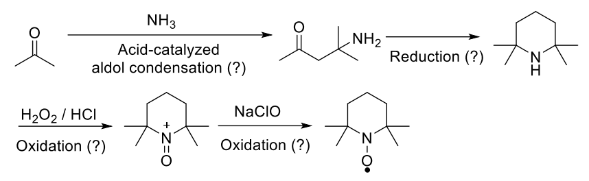 此外,GPT-4 还对学生的有机合成应用问题提出了挑战,尽管有些答案显示了化学上的误解。例如,有一道关于合成 TEMPO 的题目曾提出了一个错误的化学反应过程。实际上,正确的合成过程是以丙酮和氨为起始原料,然后进行醛醇缩合、肼还原和解吸反应,但 GPT-4 的描述遗漏了这一过程的重要部分。
