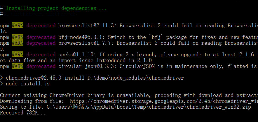 如果依赖库没有安装完成,那么可以进行暂停,进行项目所在目录执行 cnpm install 就会从淘宝镜像中安装依赖库,这样速度会比国外的要快
