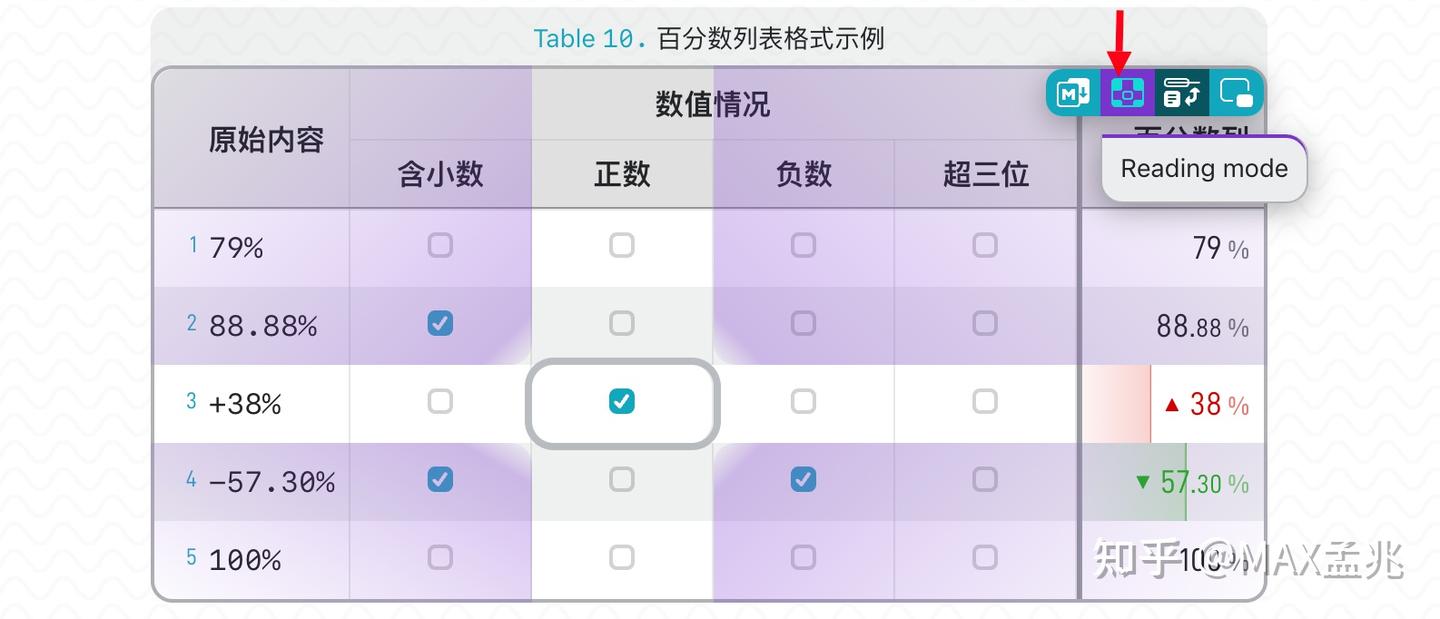 只需要要鼠标停留在表格上,就会在右上角就会显示该表格的「内容助手」,表格助手各特性如下: