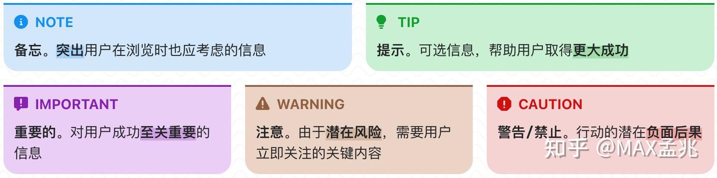 其他分类标识还有:[!TIP] [!IMPORTANT] [!WARNING] [!CAUTION]