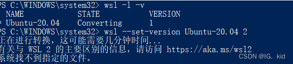 在wsl下看到Ubuntu-20.0是正常运行的,但是升级为wsl2时无法找到对应的文件
