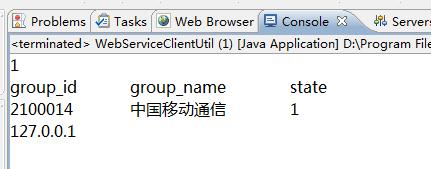 1 package com.server.impl; 2 3 import java.util.ArrayList; 4 import java.util.List; 5 6 import com.server.bean.GroupInfo; 7 import com.server.bean.UserInfo; 8 import com.server.interfaces.IGroupInfoService; 9 10 public class IGroupInfoServiceImpl implements IGroupInfoService { 11 12 public GroupInfo getGroupInfo(UserInfo userInfo, long groupId) { 13 System.out.println("开始打印入参值..."); 14 System.out.println("groupId:" + groupId); 15 System.out.println("serInfo.getOpId():" + userInfo.getOpId()); 16 System.out.println("serInfo.getServerIp():" + userInfo.getServerIp()); 17 System.out.println("serInfo.getLocalIp():" + userInfo.getLocalIp()); 18 System.out.println("结束打印入参值..."); 19 20 // 这里是为了学习webservice调用时带javabean,所以方法的返回值就直接手动的构造了 21 GroupInfo group = new GroupInfo(); 22 group.setColCount(1); 23 24 List colNames = new ArrayList(); 25 colNames.add("group_id"); 26 colNames.add("group_name"); 27 colNames.add("state"); 28 group.setColNames(colNames); 29 30 String colValues[] = { "2100014", "中国移动通信", "1" }; 31 group.setColValues(colValues); 32 33 group.setUserInfo(userInfo); 34 return group; 35 } 36 37 }