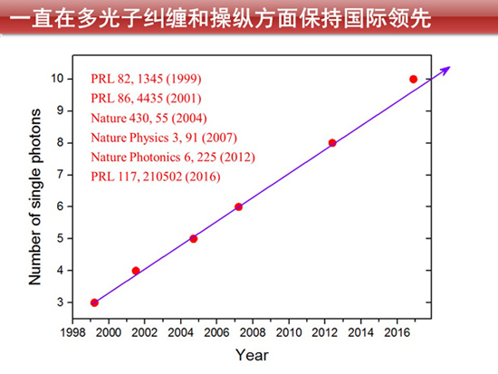 2016年,潘建伟团队首次成功实现“十光子纠缠”。多粒子纠缠操纵作为量子信息处理基本能力的核心指标,近年来一直是国际学界角逐的焦点。操纵的纠缠光子数目越多,量子信息处理能力就会呈指数增长,但同时实验实现的难度也急剧增加。