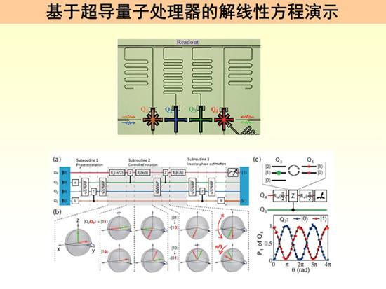 另外,这次研究团队自主研发了10比特超导量子线路样品,通过发展全局纠缠操作,成功实现了目前世界上最大数目的超导量子比特的纠缠和完整的测量。更进一步的是,研究团队利用超导量子线路演示了求解线性方程组的量子算法,证明了通过量子计算的并行性加速求解线性方程组的可行性。