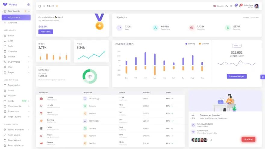 你还可以查看Vuexy VueJS管理模板以获取更好的想法。它基于bootstrapVue。此外,它是一个可高度定制,高级,最受客户喜爱的多用途管理模板。