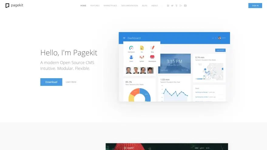 模块化轻量级CMS由Symfony组件和Vue.js构建而成。无论是个人博客还是公司的网站。使用Pagekit,可以为网络创建功能强大的内容,这些内容可以在每台设备上完美运行。Pagekit干净直观的界面使您可以专注于最重要的事情,管理你的内容。
