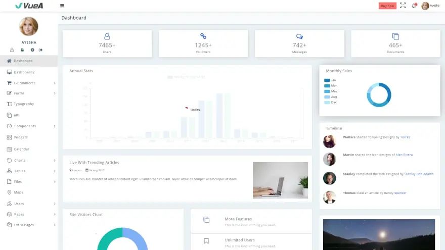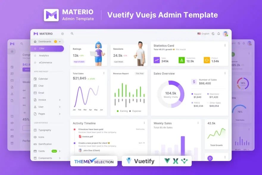 你可以查看MaterioVuetify VueJS AdminTemplate以获得更好的想法。Materio还提供了宝贵的功能,旨在帮助创建完全符合你想象的优质单页应用程序。