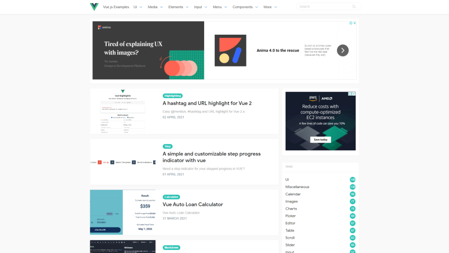VueJS示例,顾名思义,它是使用VueJS制作的简单且可自定义的步骤进度指示器,Vue自动贷款计算器,通知/Toast组件等示例的集合。不仅如此,它还提供了使用VueJS制作的UI,游戏,元素,媒体等组件。