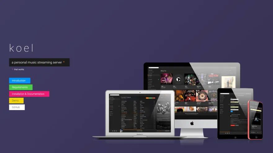 Koel是一个简单的基于Web的个人音频流媒体服务,在客户端用Vue编写,在服务器端用Laravel编写。针对Web开发人员,Koel采用了一些更现代的Web技术- CSS网格,音频和拖放API等来完成它的工作。