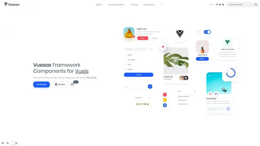 Vuesax是一个基于Vuejs的组件框架,它是一个从头开始设计为可增量采用的框架。它提供了独特且可重用的UI组件。该框架的重点是促进应用程序的开发,在不删除必要功能的情况下改进其设计。此外,所有组件都具有独特的颜色,形状和设计,因此你可以自由使用它们而不会失去创建和生产的速度。