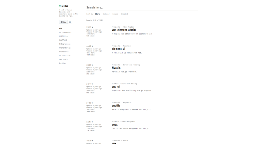 Vuelib是Vue.js库,框架,实用程序和组件的列表。
