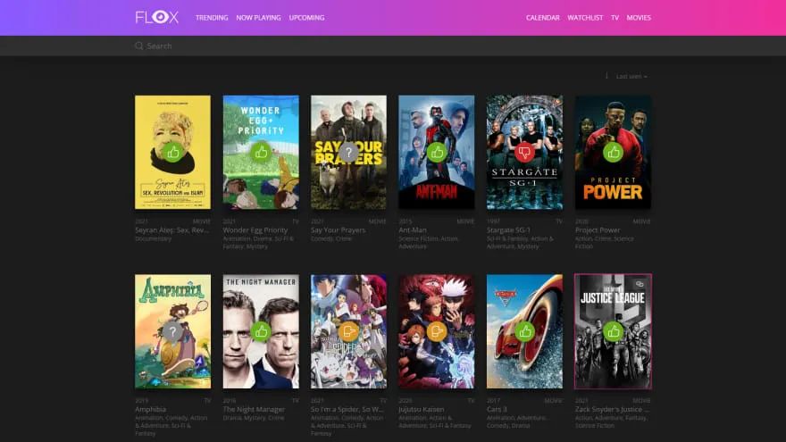 Flox是一个自托管的电影,系列和Amines观看列表。它建立在Laravel和Vue之上.js并使用电影数据库API。该评级基于3分制:goodmedium bad