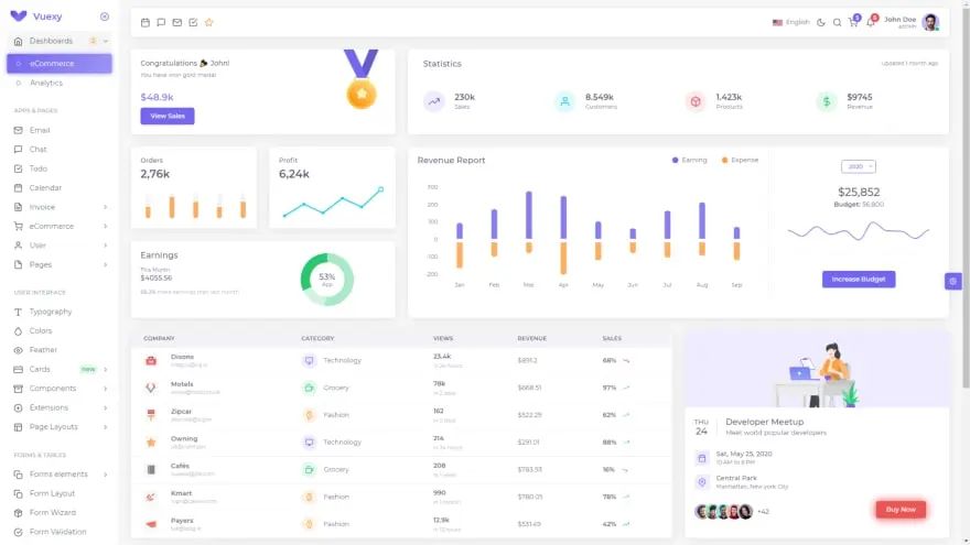 Vuexy提供了一些非常惊人且引人注目的功能: