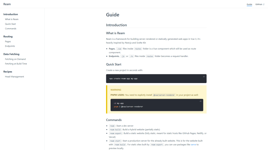 Ream是一个用于在Vue3中构建服务器渲染或静态生成的Web应用程序的框架,它受到Next.js和SvelteKit的启发。