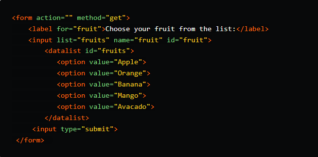 数据列表指定了预定义选项列表,并允许用户向其中添加更多内容。它提供了一个自动完成功能,允许您提前获得所需的选项。