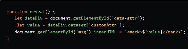 注意:为了在JavaScript中读取这些属性的值,您可以使用带有完整HTML名称(即data-custom-attr)的getAttribute(),但是,该标准定义了一种更简单的方法:使用数据集属性。
