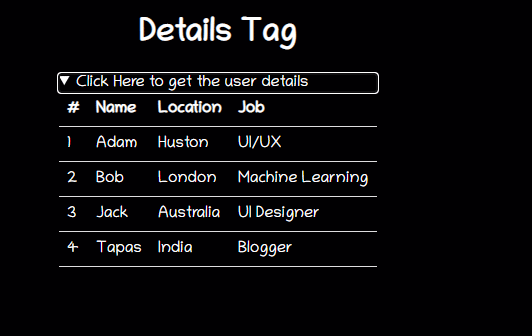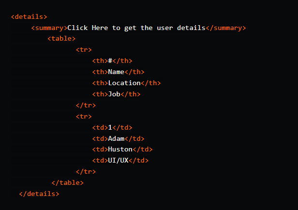 <details>标签向用户提供了详细信息,与<summary>一起用于为其指定一个可见的标题。默认情况下,该小部件是关闭的。打开时,它才会展开并显示内容。