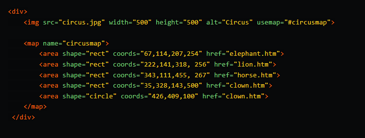 <map>标签可以与<area>标签一起确定可点击区域,有助于定义图像映射。图像映射是包含一个或多个可单击区域的图像。