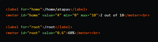 但需要注意的是,不要将<meter>标签用于进度指示器类型的用户体验。我们有来自HTML5的<Progress>标签。
