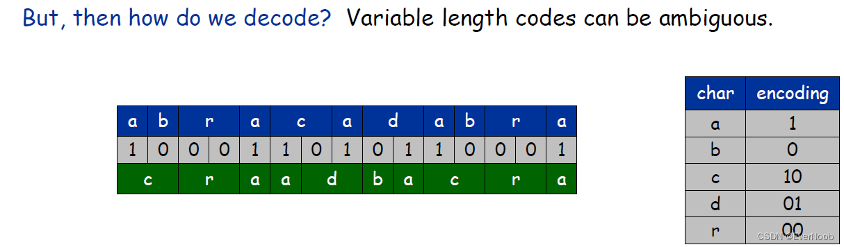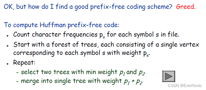 ==> the most frequent symbol, with the largest weight will be nearest to the root, which means it will have the shortest encoding