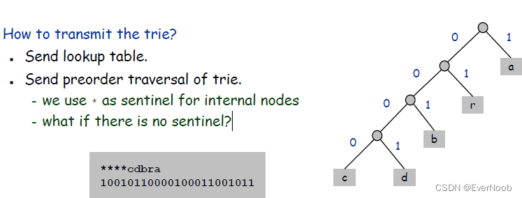 ==> if there are no sentinels, retriving encoding scheme is confusing(, write a trie parser for any traversal and see how you fare without sentinels).