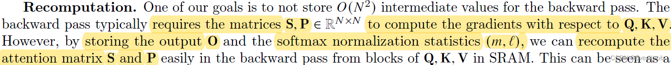 notably for FlashAttention, we do not save P